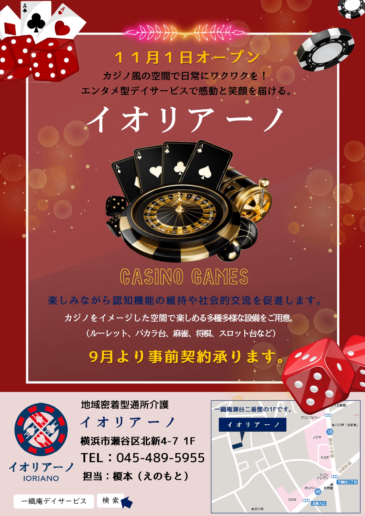 - 【カジノ風エンタメデイサービス】イオリアーノオープンのお知らせ
