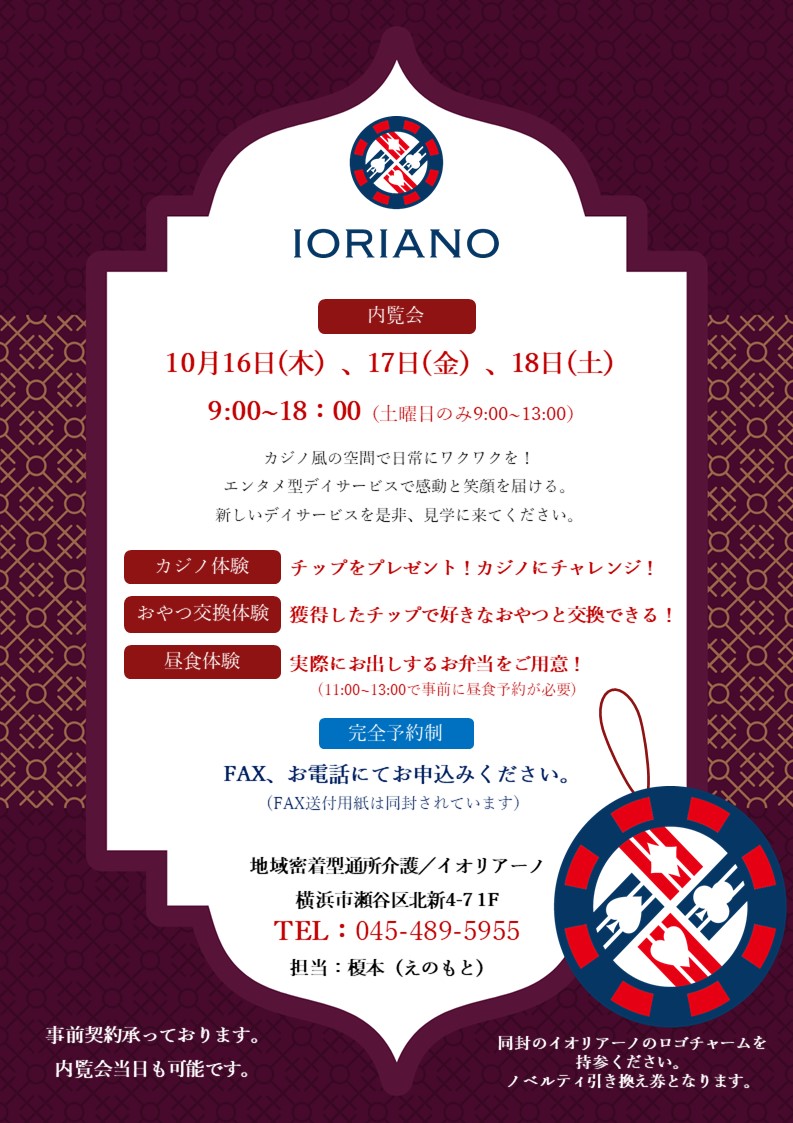 イオリアーノのオープンに伴い内覧会を実施いたします。